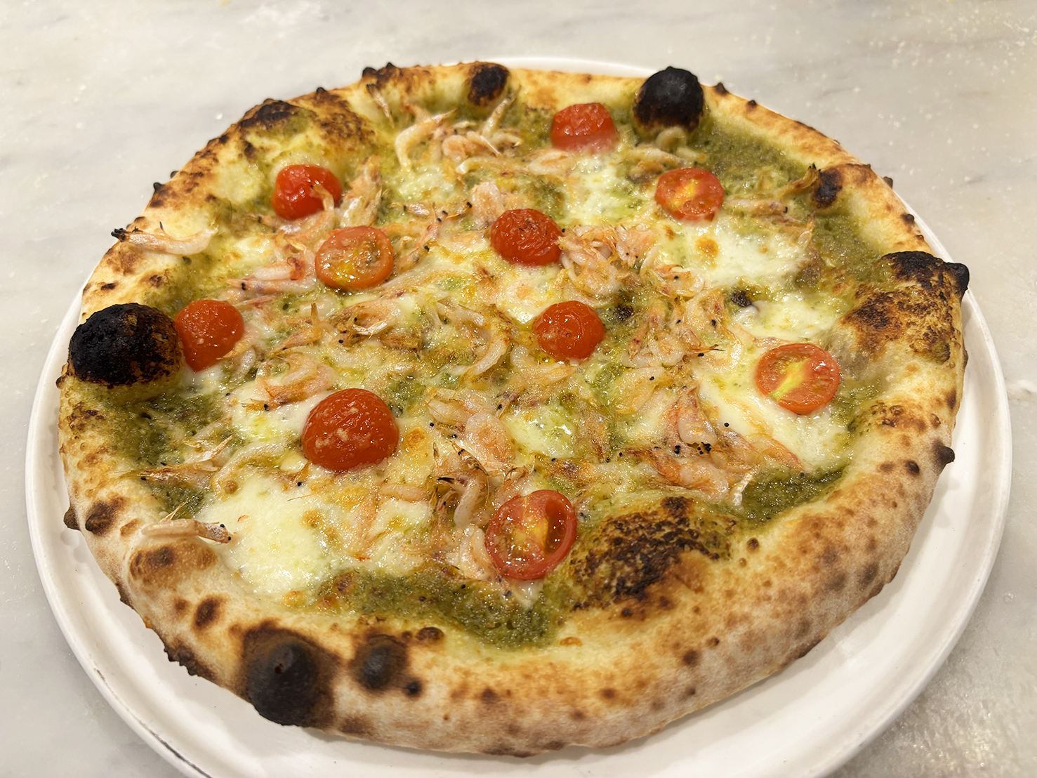 おすすめピッツァをご紹介!「桜エビとチェリートマトのジェノベーゼソース」(ディナータイム)